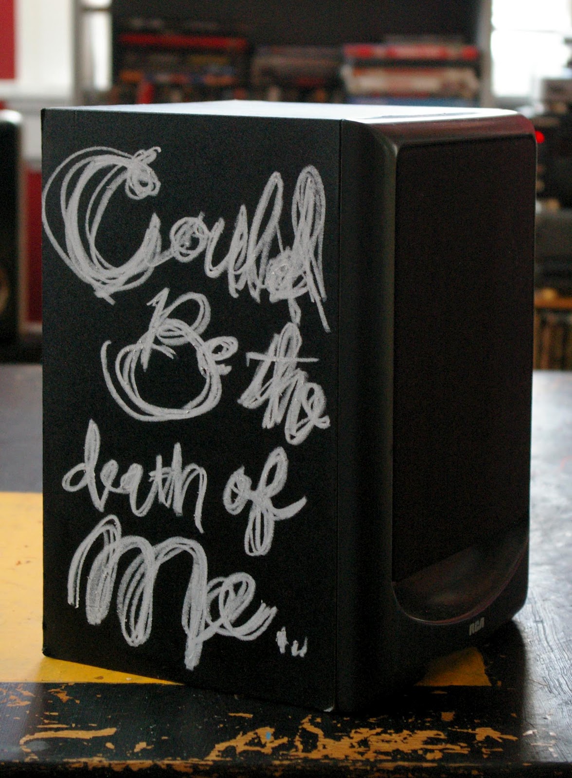 The first speaker was made with the date that many of, what I consider, the most influential bands formed. Much like the prior Scribbling History... piece, the idea was about meditation, reflection, and repetition. The second speaker has two sentences from the song "Heroin" by The Velvet Underground, a personal favorite...